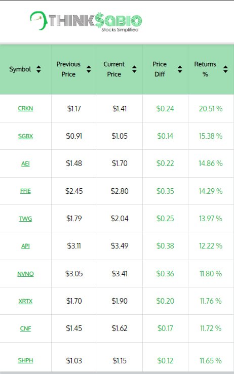 #ThinkSabio Trending Stocks