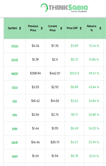 Gainers: #HTOO #ZOOZ #MEDP #CDLX #KSS #FFAI #KIRK