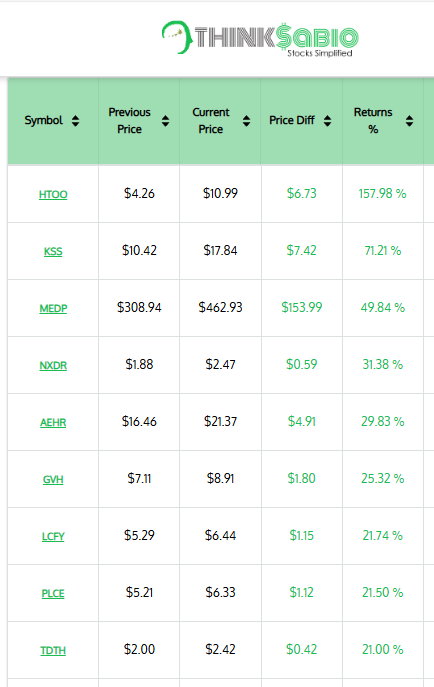 Gainers: #HTOO #KSS #MEDP #NXDR #AEHR #GVH #LCFY #PLCE