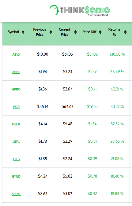 Gainers: #ABVX #ANEB #GPRO #VICR #DNUT #OFAL #CLLS