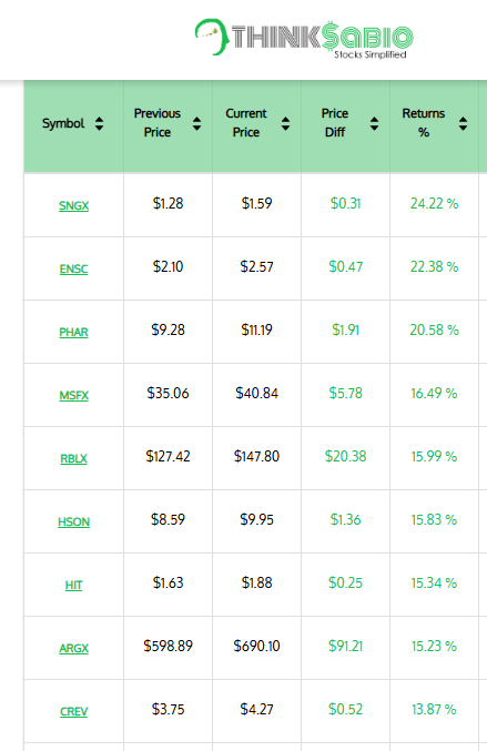Gainers: #PHAR #SNGX #HIT #MSFX #ENSC #HSON #RBLX