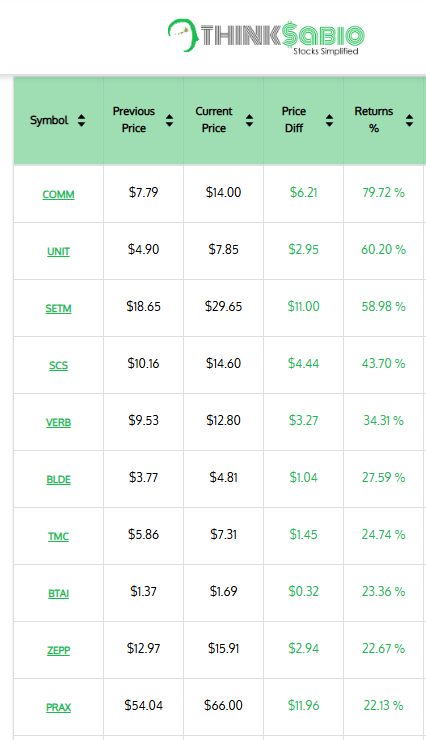 Gainers: #COMM #UNIT #SETM #SCS #INMB #VERB #BLDE