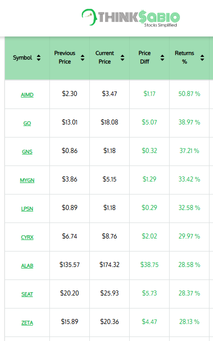 Gainers: #AIMD #GNS #GO #LPSN #MYGN #CYRX #ALAB