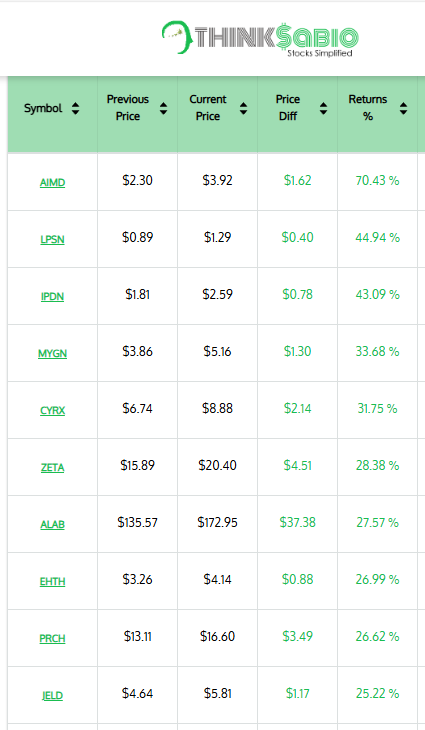 Gainers: #AIMD #LPSN #IPDN #MYGN #CYRX #ZETA #ALAB