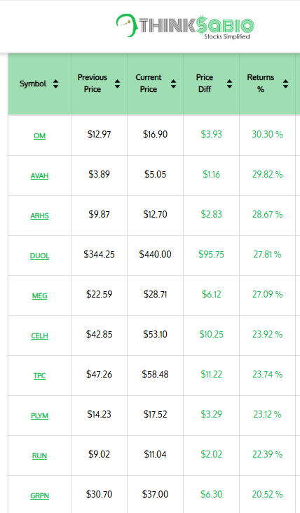 Gainers: #OM #AVAH #ARHS #DUOL #MEG #CELH #TPC