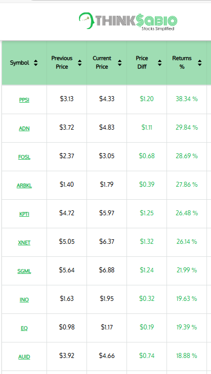 Gainers: #PPSI #ADN #FOSL #ARBKL #KPTI #XNET #SGML