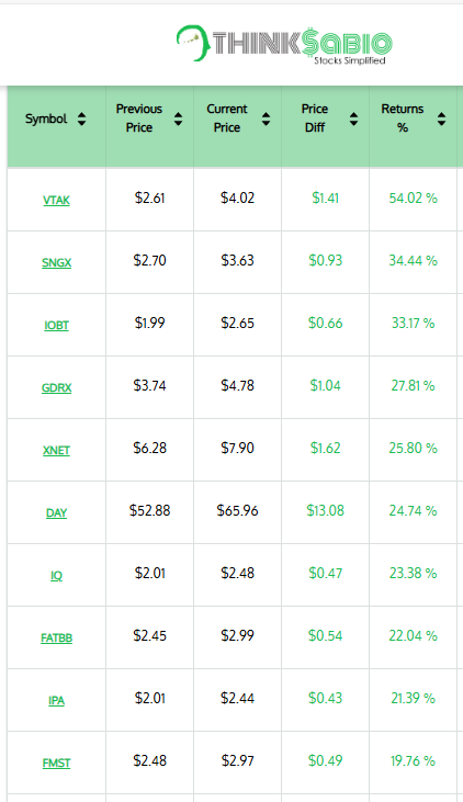 Gainers: #VTAK #SNGX #IOBT #GDRX #XNET #DAY #IQ