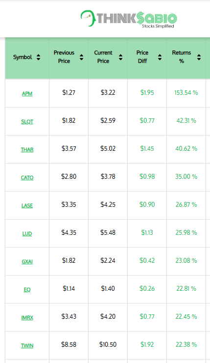 Gainers: #APM #SLQT #THAR #CATO #LASE #LUD #IMRX