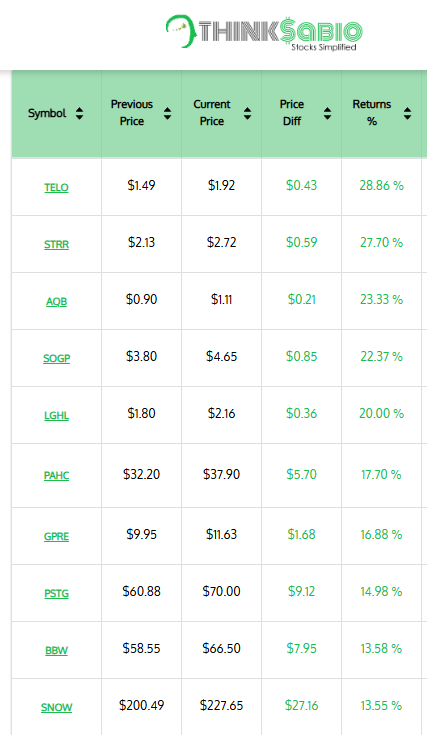 Gainers: #TELO #STRR #AQB #SOGP #LGHL #PAHC #GPRE