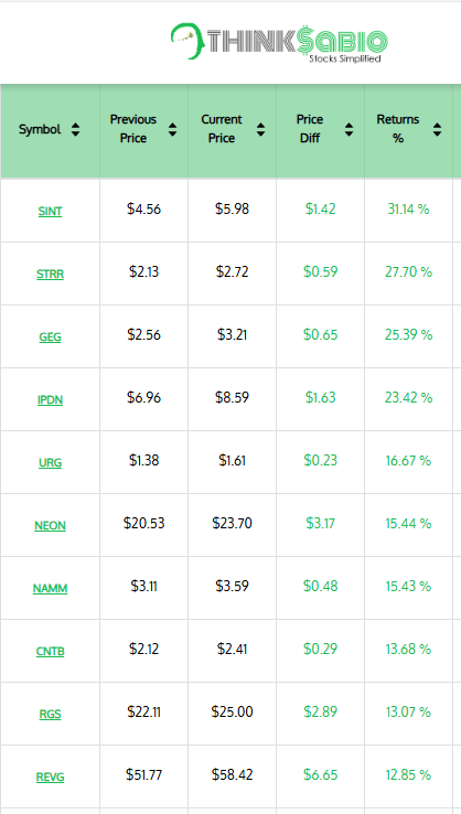 Gainers: #SINT #STRR #GEG #IPDN #URG #BAOS #NEON