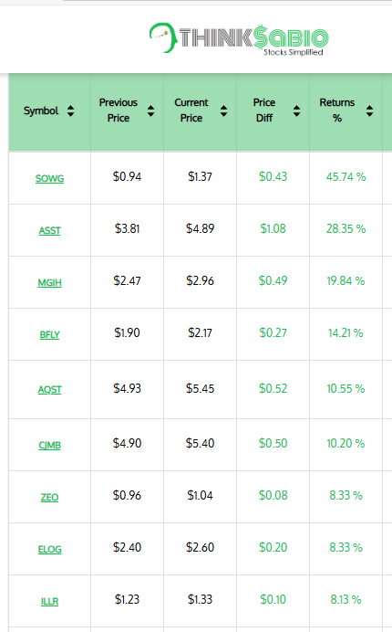 Gainers: #SOWG #ASST #MGIH #BFLY #AQST #CJMB #ZEO
