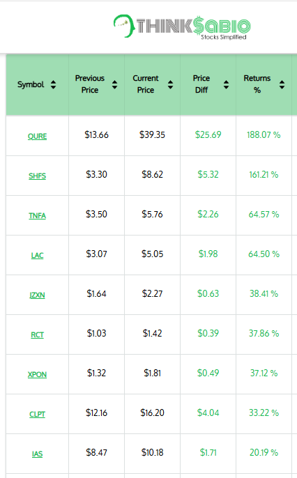 Gainers: #QURE #SHFS #TNFA ##LAC #JZXN #RCT #XPON