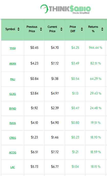 Gainers: #YHGI #AKAN #PALI #GLXG #CREG #BYND #ACOG