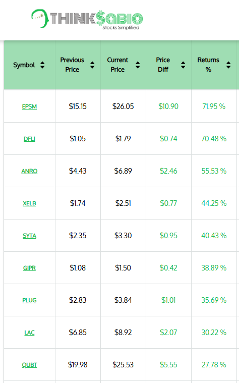 Gainers: #EPSM #DFLI #ANRO #XELB #SYTA #GIPR #PLUG