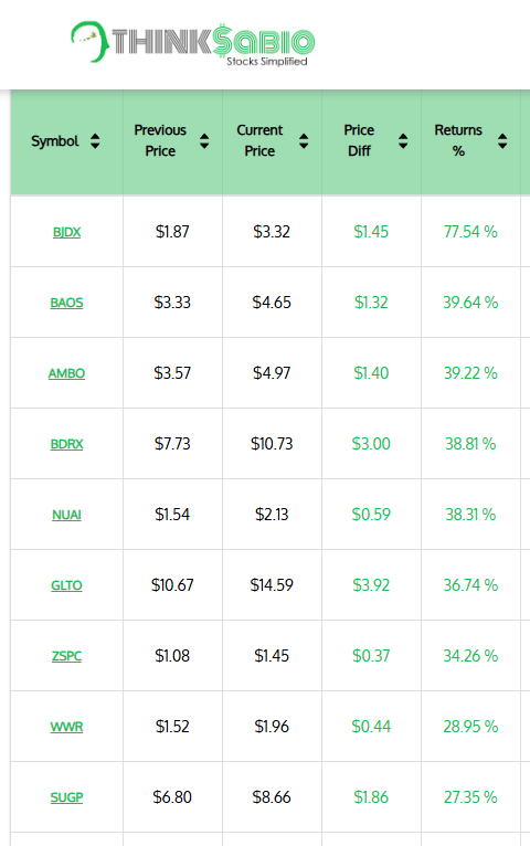 Gainers: #BJDX #NUAI #AMBO #BAOS #BDRX #ZSPC