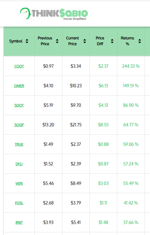Gainers: #COOT #OMER #SDOT #SOGP #TRUE #DFLI