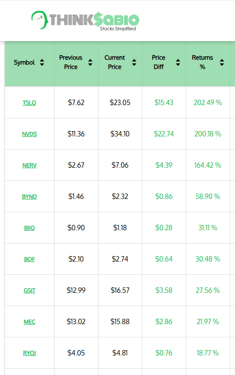 Gainers: #TSLQ #NVDS #NERV #BYND #IBIO #BOF #IFBD