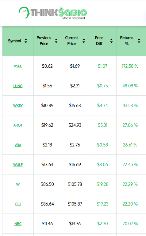 Gainers: #VSEE #LUNG #WKEY #AROT #VRA #WULF #W