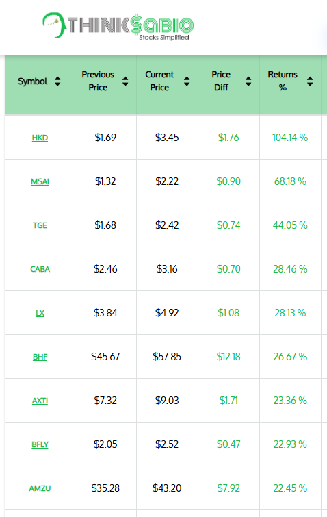 Gainers: #HKD #MSAI #TGE #CABA #LX #BHF #AXTI
