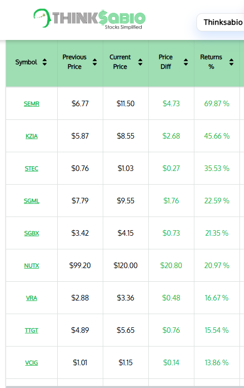 Gainers: #SEMR #KZIA #STEC #SGML #SGBX #NUTX #VRA