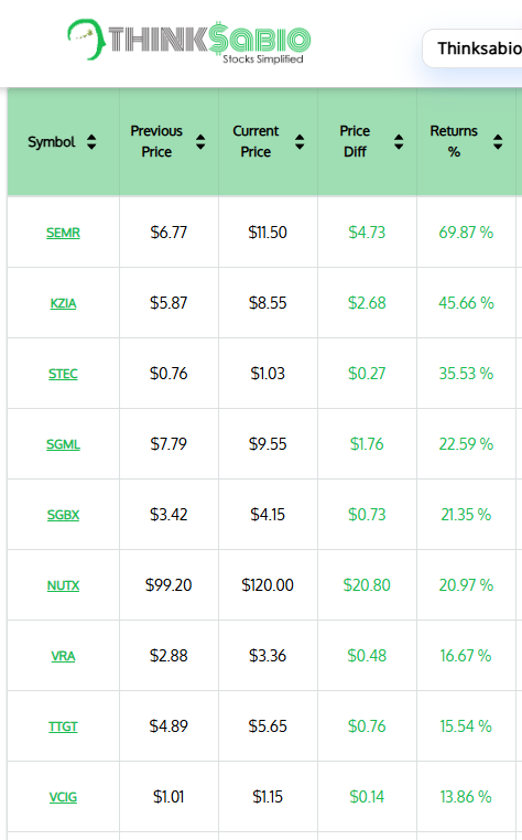 Gainers: #SEMR #KZIA #STEC #SGML #SGBX #NUTX #VRA