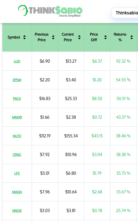 Gainers: #LUD #EPSM #PACS #MNDR #NUTX #CRNC #LFS