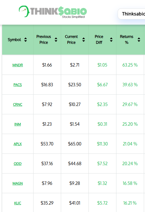 Gainers: #MNDR #PACS #CRNC #INM #APLX #ODD #MAGN