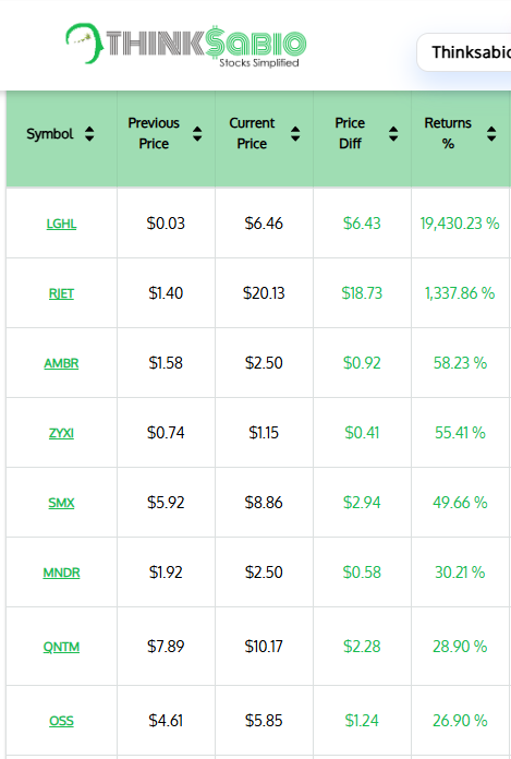 Gainers: #LGHL #RJET #AMBR #ZYXI #SMX #MNDR #QNTM