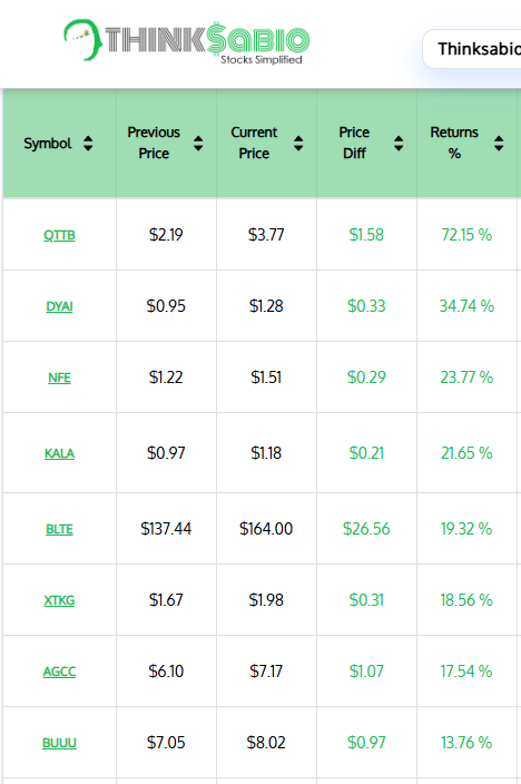 Gainers: #QTTB #DYAI #NFE #KALA #BLTE #XTKG #AGCC