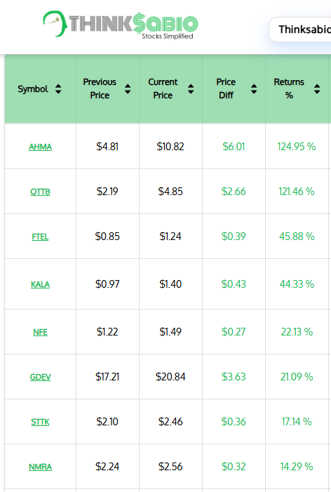 Gainers: #AHMA #QTTB #FTEL #KALA #NFE #GDEV #STTK