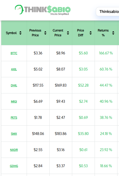 Gainers: #BTTC #AXIL #DHIL #MIGI #PETS #SMX #NXDR