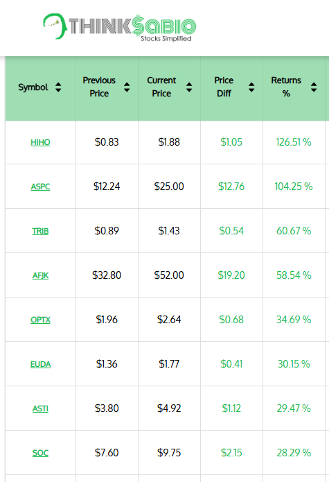 Gainers: #HIHO #ASPC #TRIB #AFJK OPTX #EUDA #ASTI