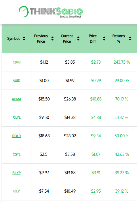 Gainers: #CJMB #AUID #AHMA #ROLR #RILYL #CGTL #RILYP