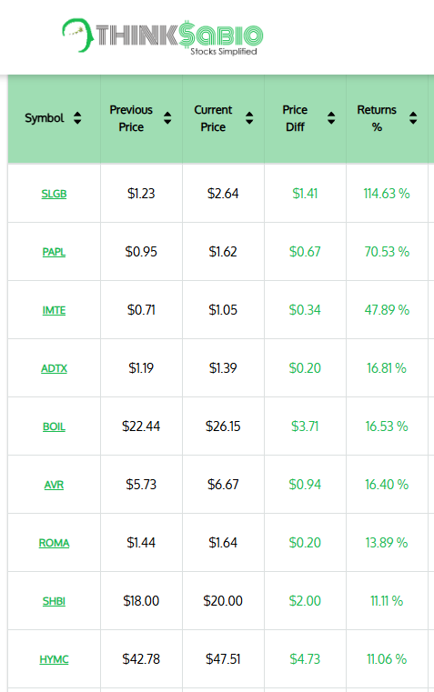 Gainers: #SLGB #PAPL #IMTE #ADTX #BOIL #AVR #ROMA