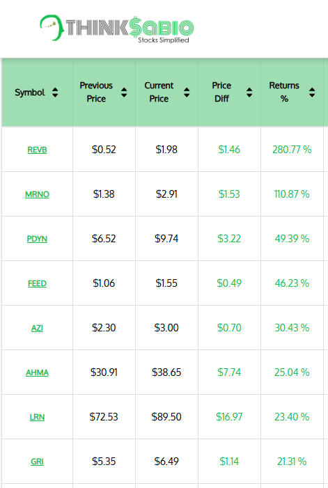 Gainers: #REVB #MRNO #PDYN #FEED #AZI #AHMA #LRN