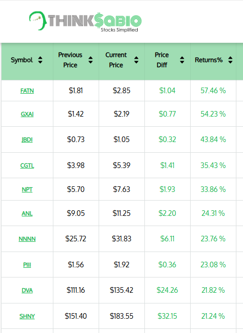 Gainers: #FATN #GXAI #FATBB #JBDI #CGTL #NPT #ANL #PIII