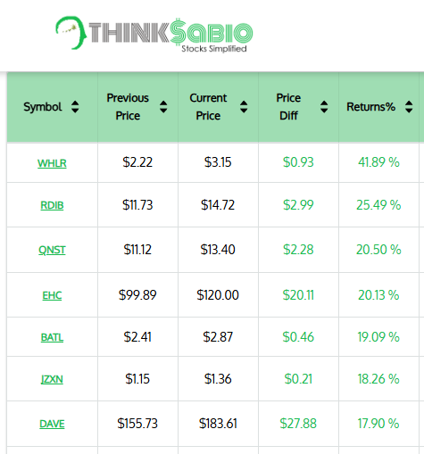 Gainers: #WHLR #RDIB #QNST #BATL #DAVE #MAXN #JZXN