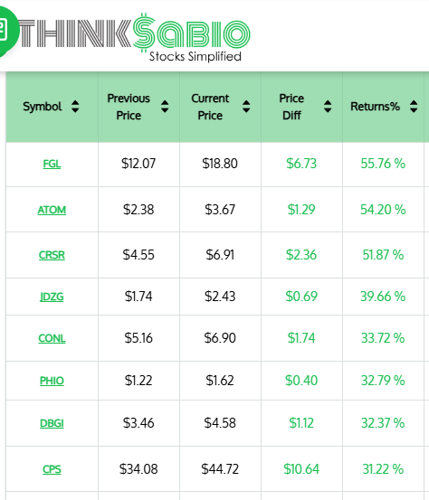 Gainers: #FGL #ATOM #CRSR #JDZG #CONL #PHIO #DBGI