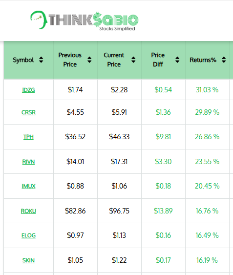 Gainers: #JDZG #CRSR #TPH #RIVN #IMUX #ROKU #ELOG