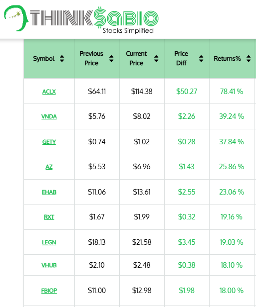 Gainers: #ACLX #VNDA #GETY #AZ #EHAB #RXT #LEGN