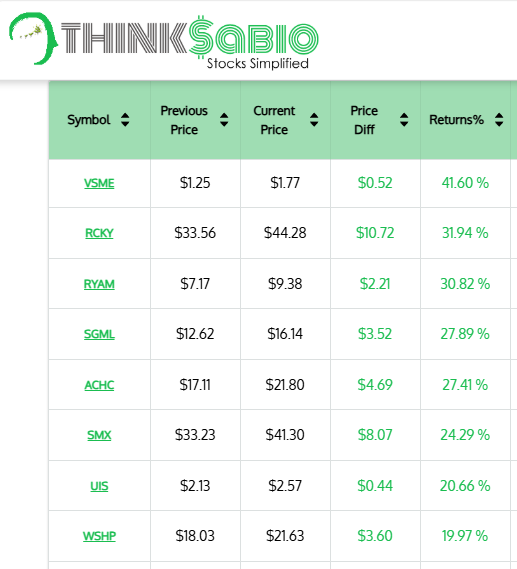 Gainers: #VSME #RCKY #RYAM #SGML #ACHC #SMX
