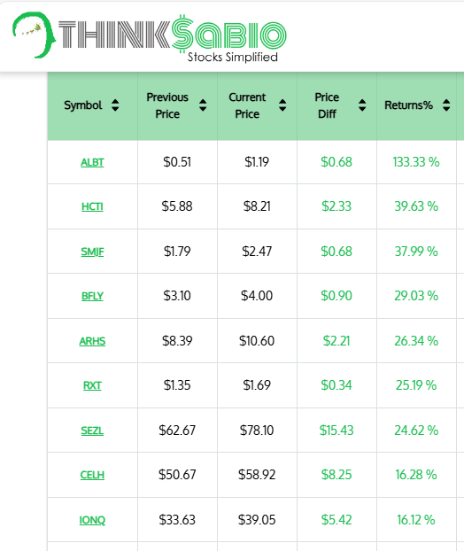 Gainers: #ALBT #HCTI #SMJF #BFLY #ARHS #RXT #SEZL