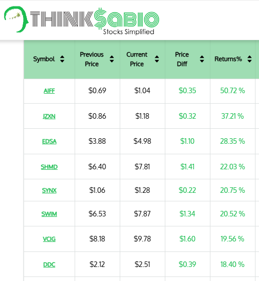 Gainers: #AIFF #JZXN #EDSA #SHMD #SYNX #SWIM #VCIG