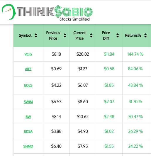 Gainers: #VCIG #AIFF #EOLS #SWIM #BW #EDSA #SHMD
