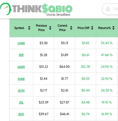 Gainers: #CHNR #SER #GDXD #SUNE #DLTH #ZSL #JDST