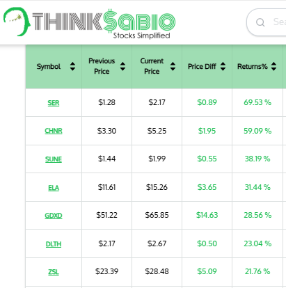 Gainers: #SER #CHNR #SUNE #ELA #GDXD #DLTH #ZSL