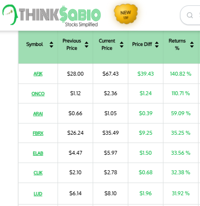 Gainers: #AFJK #ONCO #ARAI #ELAB #FBRX #CLIK #LUD